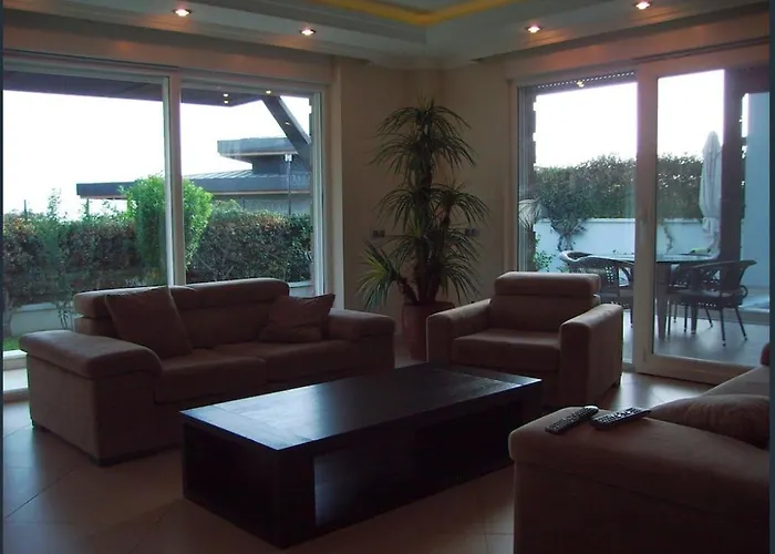 Sommerhaus van 180 vierkante meter in Side ligt op 6 km afstand van Tempel van Apollo en Athene. Met een balkon, een TV en airconditioning heeft deze villa ook een gedeelde keuken met een oven en keukengerei.
